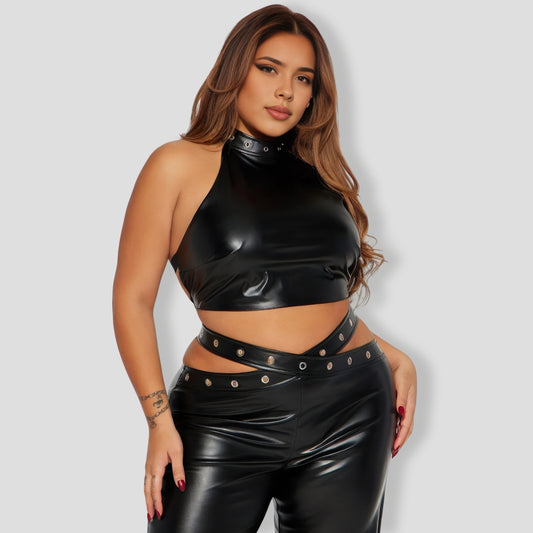 Crossin' Paths Faux Leather Skirt Set - Brown