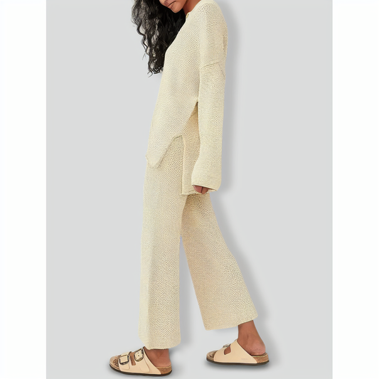 Lazy Style Knitted Zipper Lapel Sweater Cardigan + Wide-Leg Pants