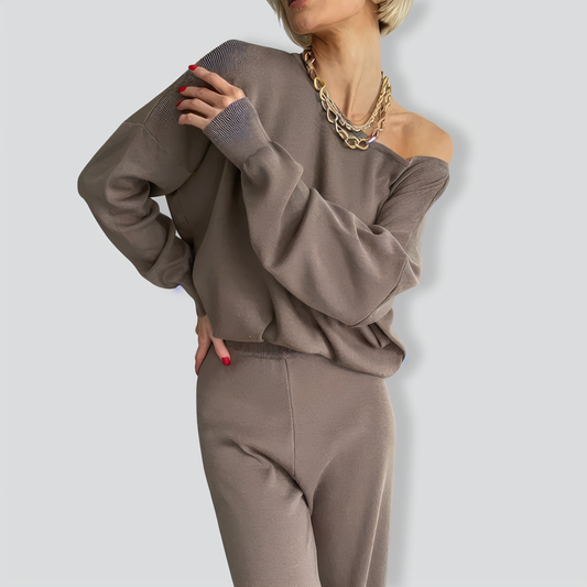Off-Shoulder Knitted Casual Two-Piece Set