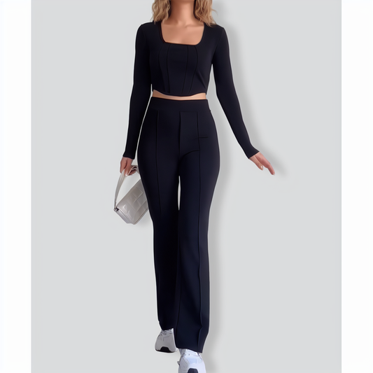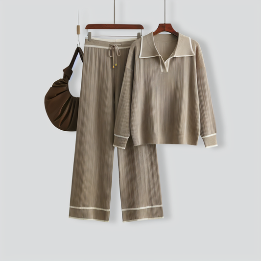 Stylish Striped Top & Solid Color Wide Leg Pants Two-Piece Set