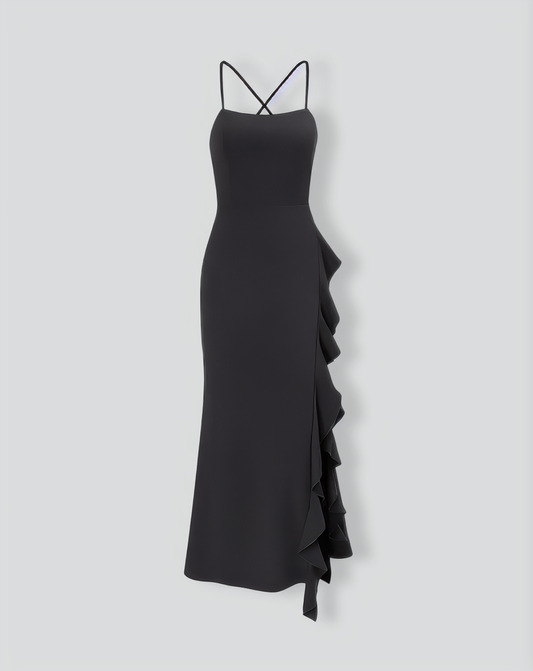 The Black Sweetheart Neck Bodycon Slip Maxi Dress
