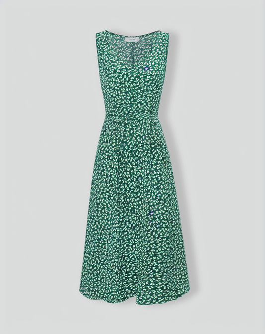 The Green Sweetheart Neck Cap Sleeve Floral Midi Dress