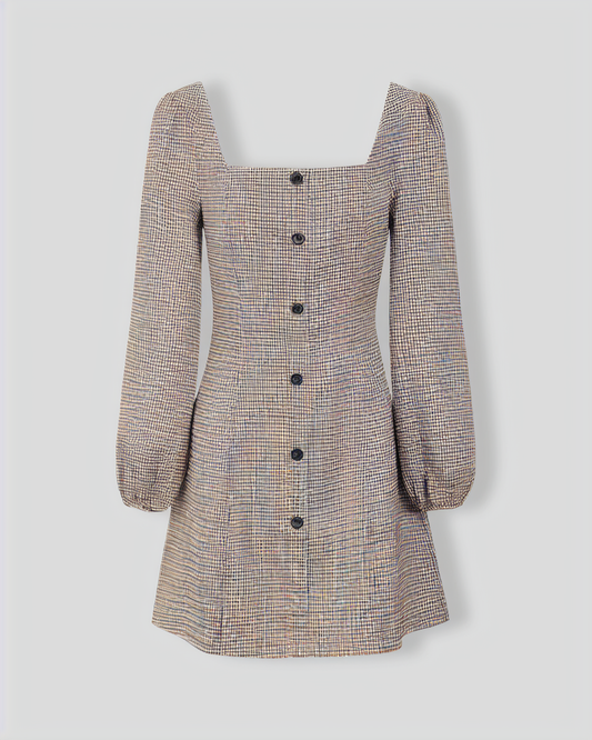 The Lapel Plaid Sleeveless Cotton Pocket Mini Dress