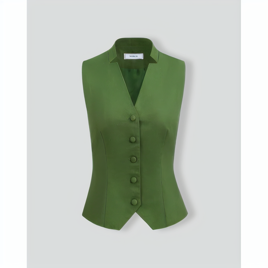 Women's Khaki Crew Neck Ribbed Tencel Tanks
