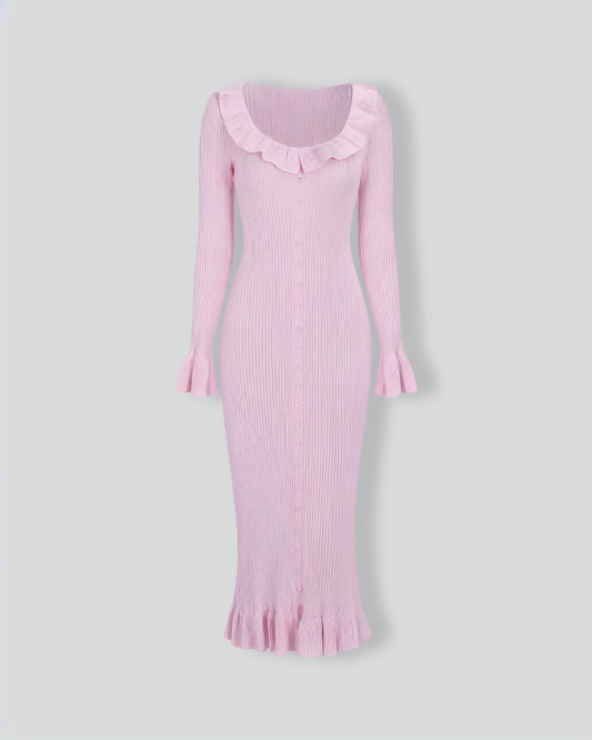 Women's Pink U-Neck Ruffle Bodycon Sweater Dress