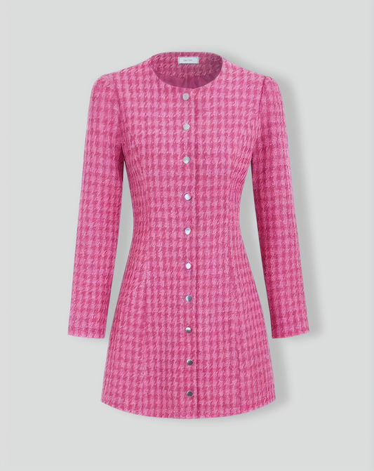 Women's Pink V-Neck Plaid Cotton Mini Dress