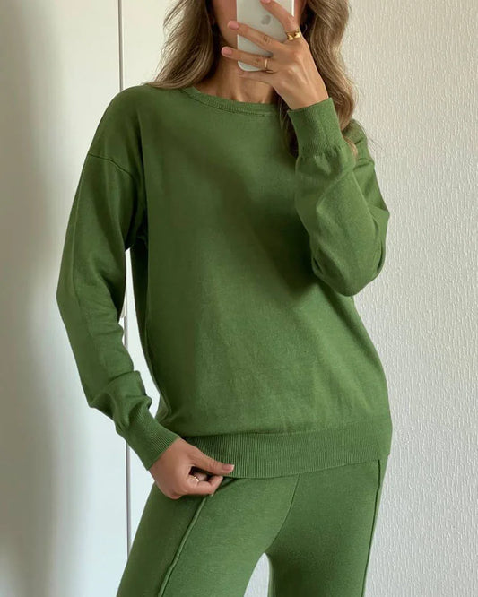 Casual Round Neck Top and Carrot Pants Knitted Two-Piece Set
