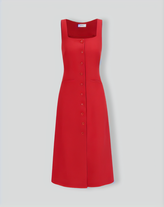 The Red Sweetheart Neck Floral Lace Trim Midi Dress