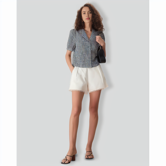 Women's Navy Lapel Long-Sleeve Striped Shirt