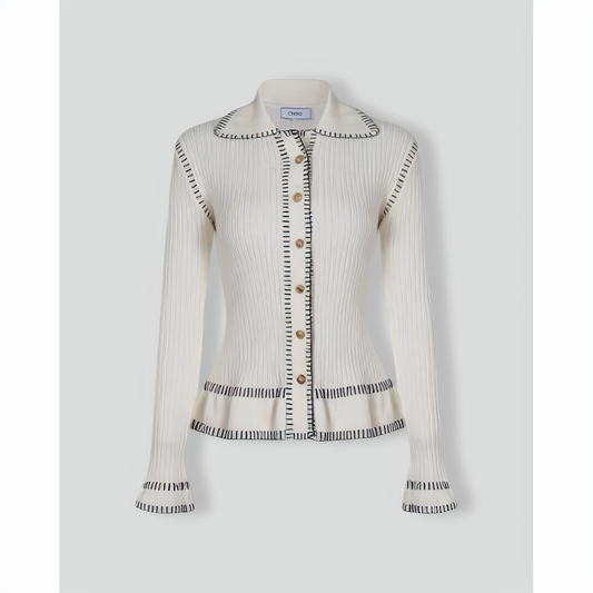 BC1400 The Beige Ribbed Cut Out Bowknot Knit Top