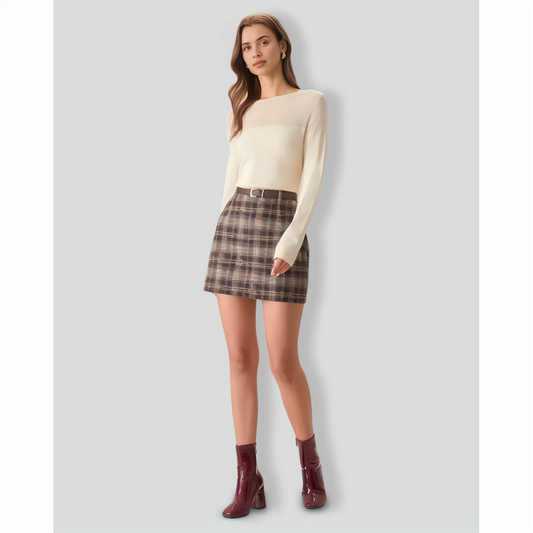 Women's Apricot Mock Neck Jacquard Knit Tee
