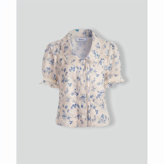 The Lace Spliced Pleated Floral Shirt