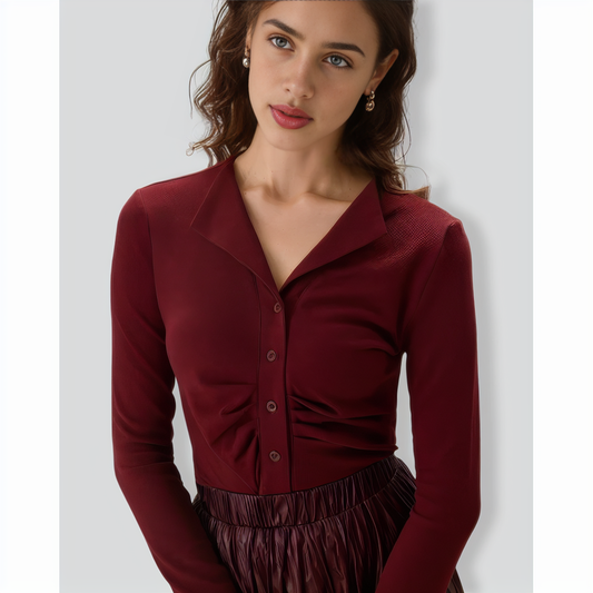 Red Ruched Single-breasted Cardigan
