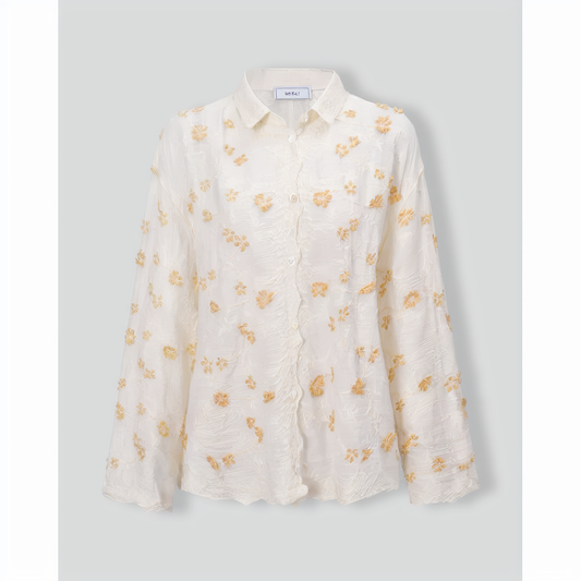 Women's Apricot Jacquard Cotton Long Sleeve Shirt