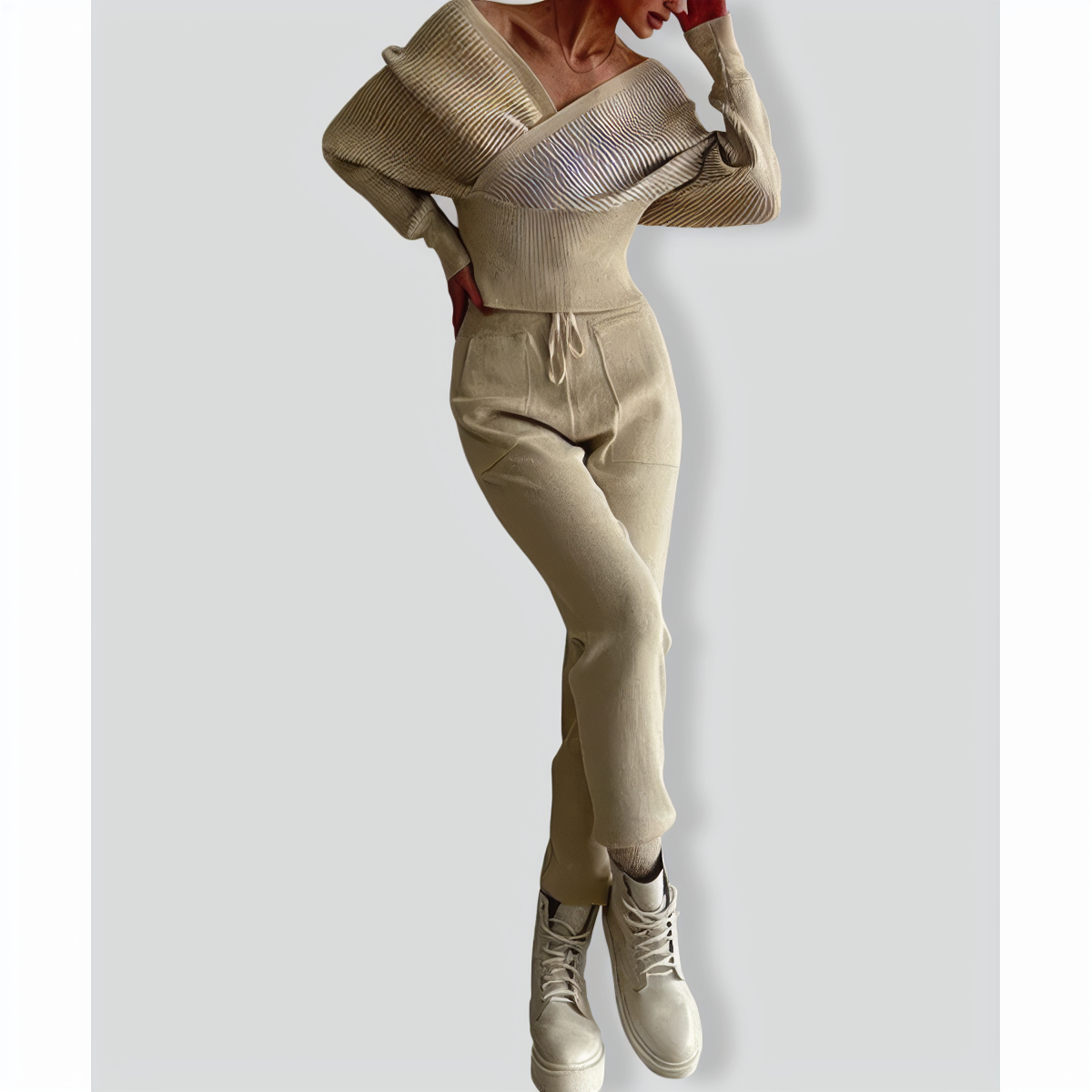 Stylish Bat-sleeved Off Shoulder Two-piece Set