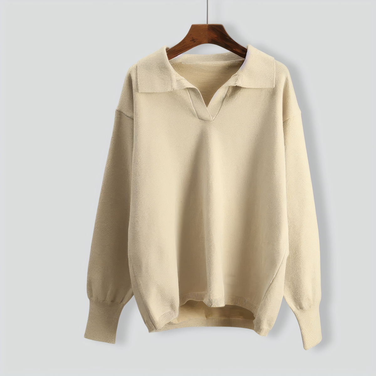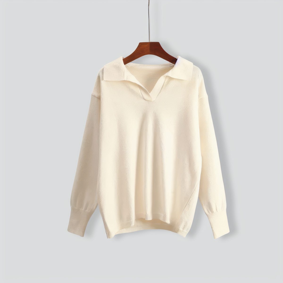 Fashionable Lapel Knitted Top + Wide-Leg Pants Two-Piece Set