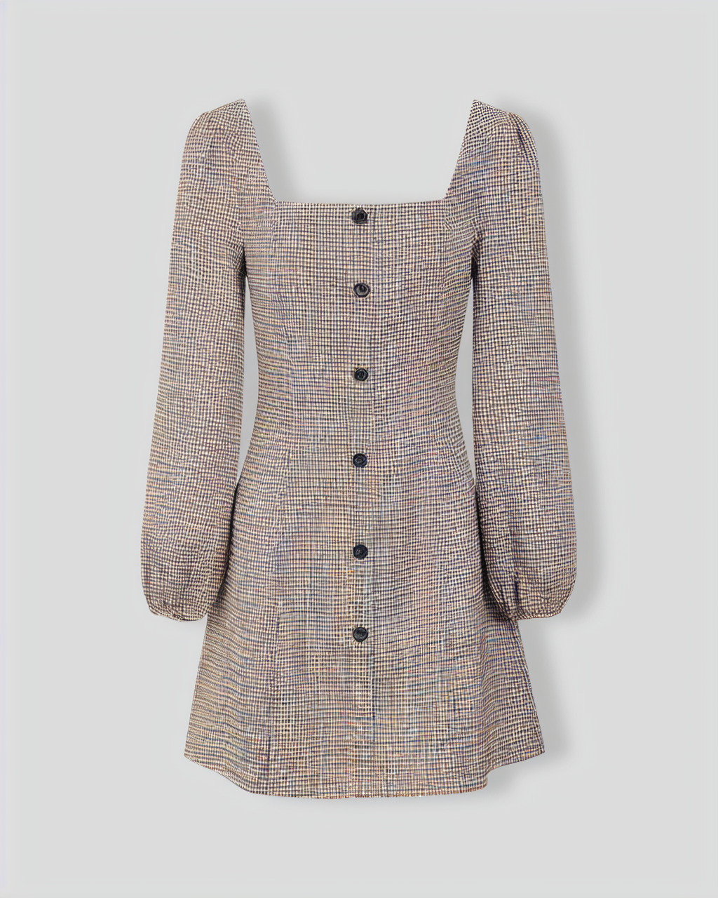 The Khaki Square Neck Plaid Button Mini Dress