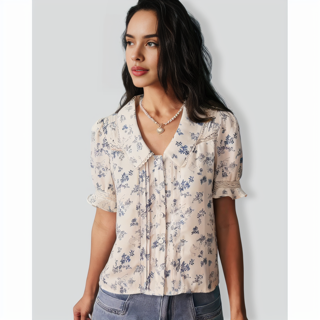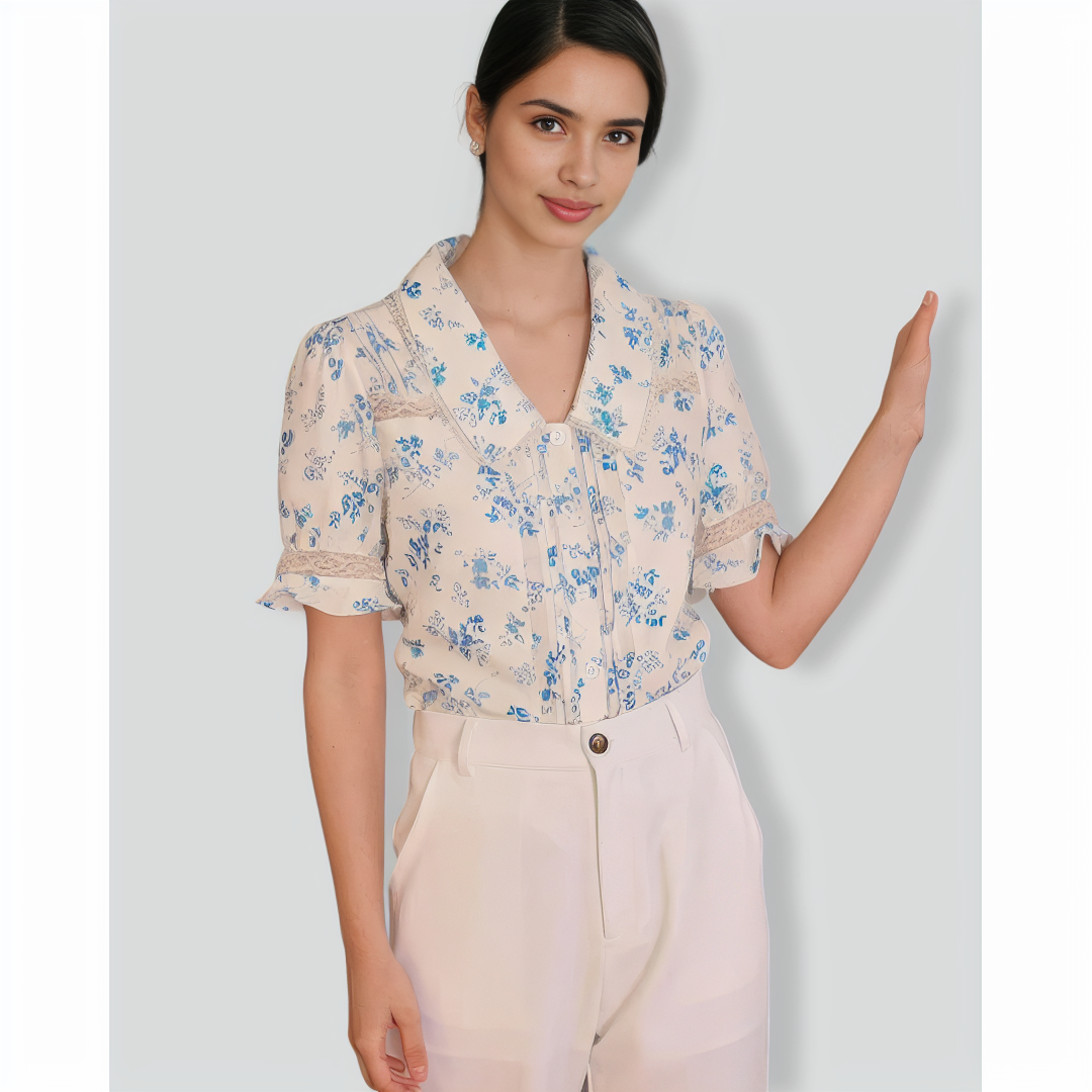 The Lace Spliced Pleated Floral Shirt