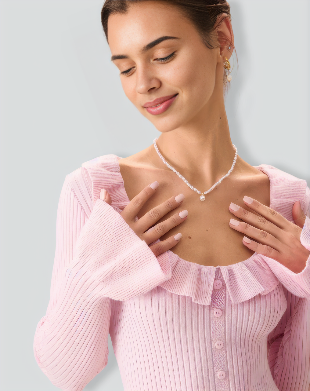 Women's pink u-neck ruffle look